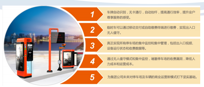 智能停车管理系统是一个由 计算机、网络设备和车道管理设备组成的停车场管理系统,用于管理停车场的车辆通行、引导停车流和收取停车费。通过对车辆进出口记录和现场位置的收集和记录,实现对车辆出入站和现场车辆的动态、静态综合管理。